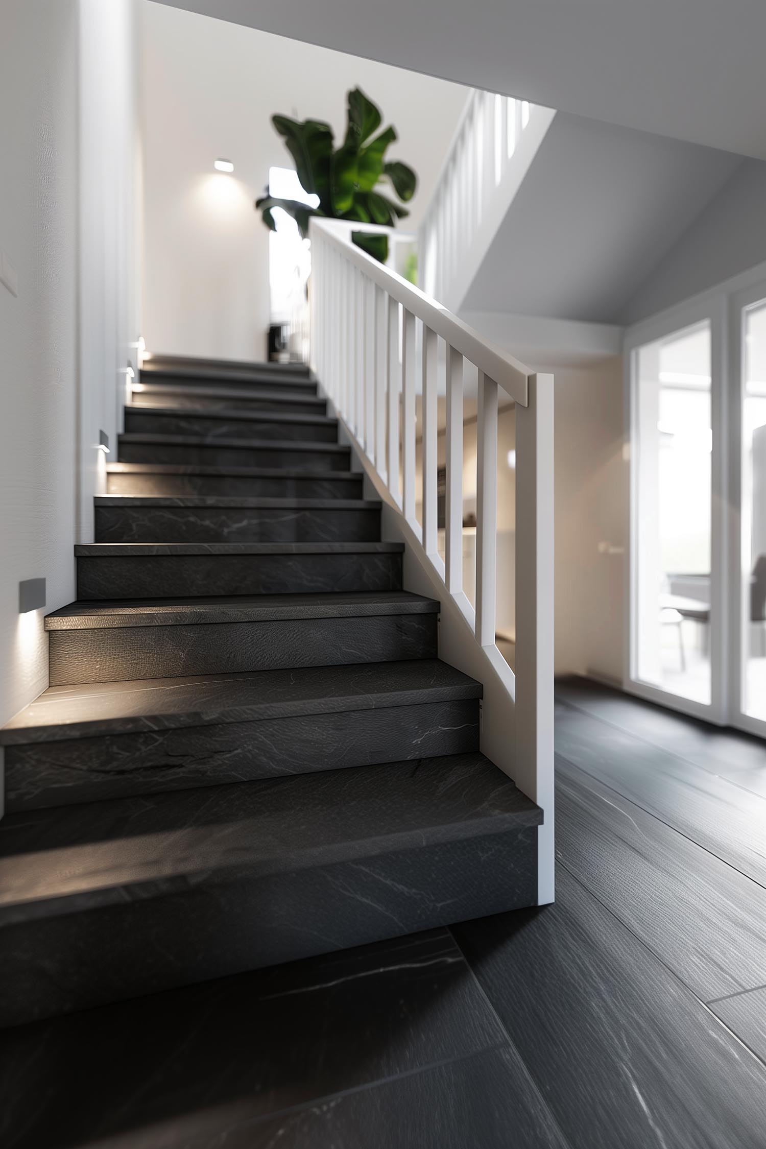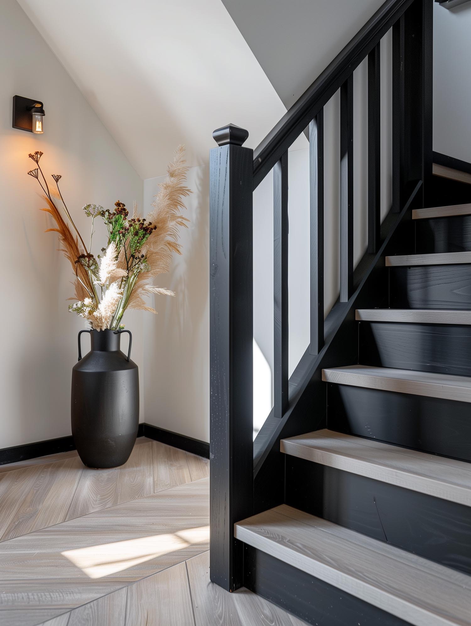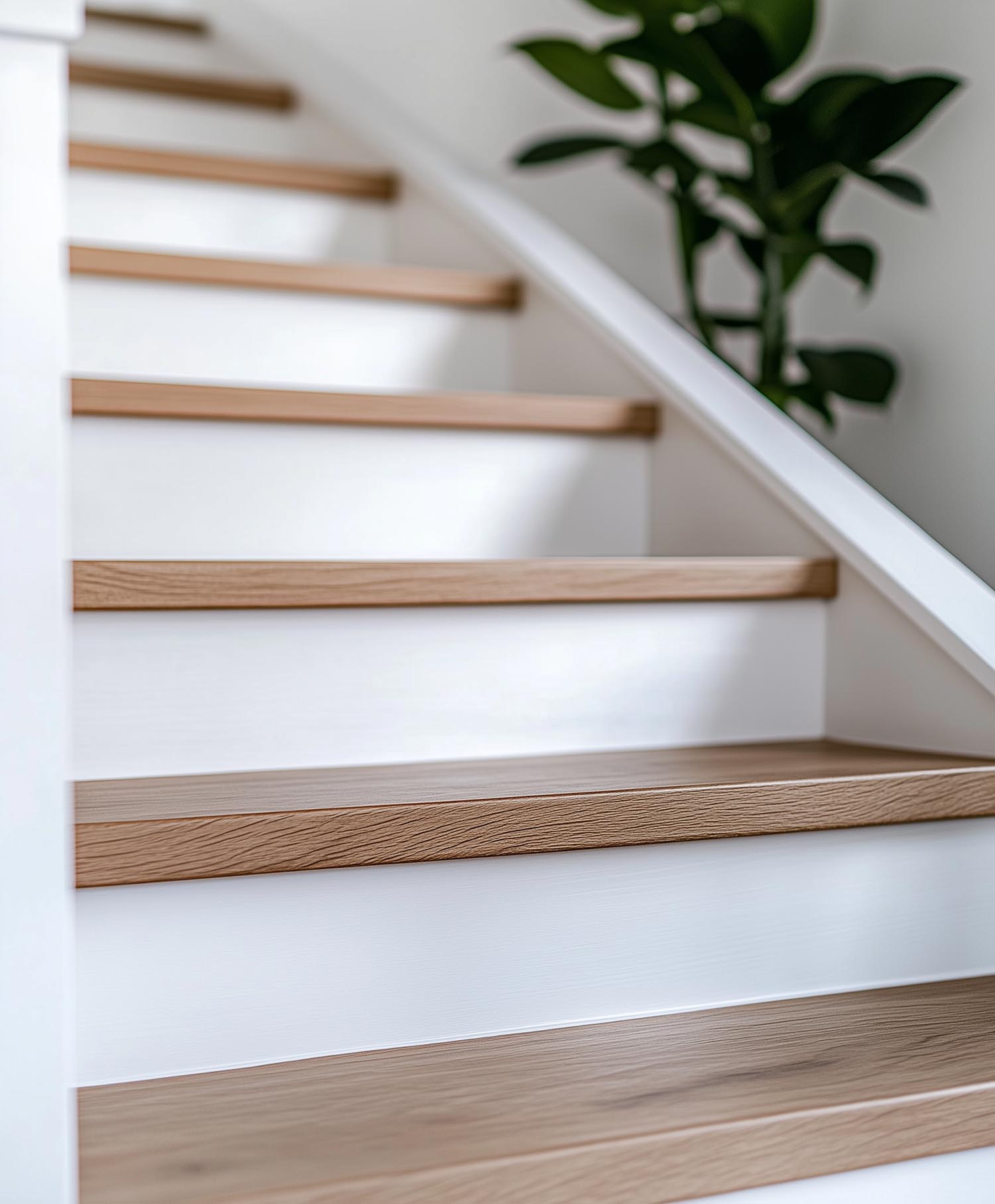 Laminaat biedt een stijlvolle en duurzame oplossing voor traprenovatie, met een breed scala aan afwerkingen.