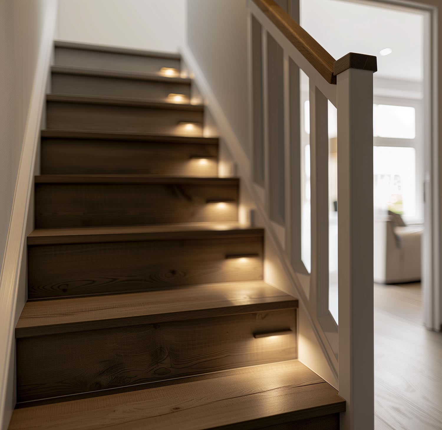 Extra opties, zoals verlichting of leuningen, kosten doorgaans ongeveer 15% bovenop de totale prijs van de traprenovatie. Dit percentage kan variëren afhankelijk van de specifieke keuzes en de complexiteit van de extra’s.