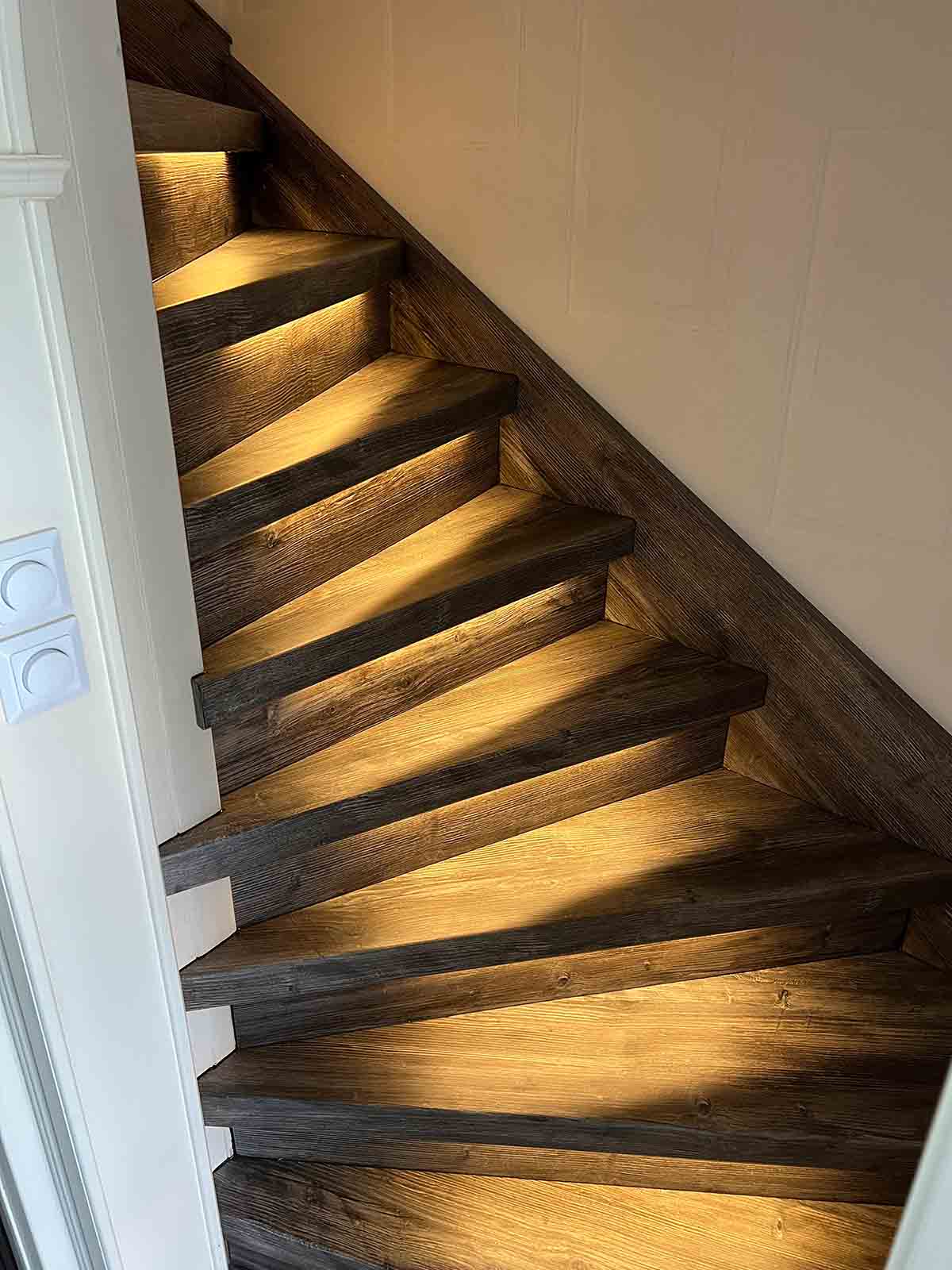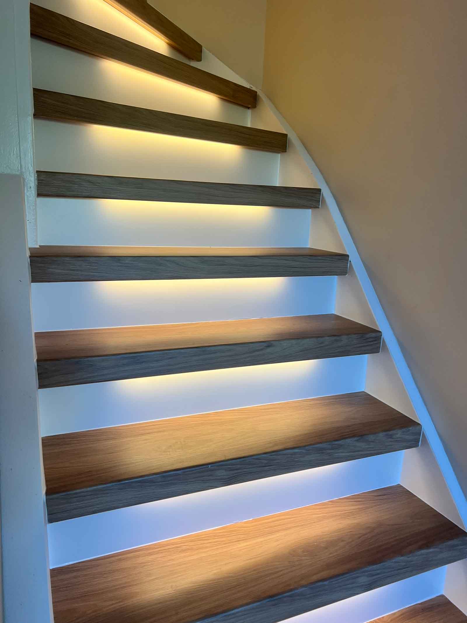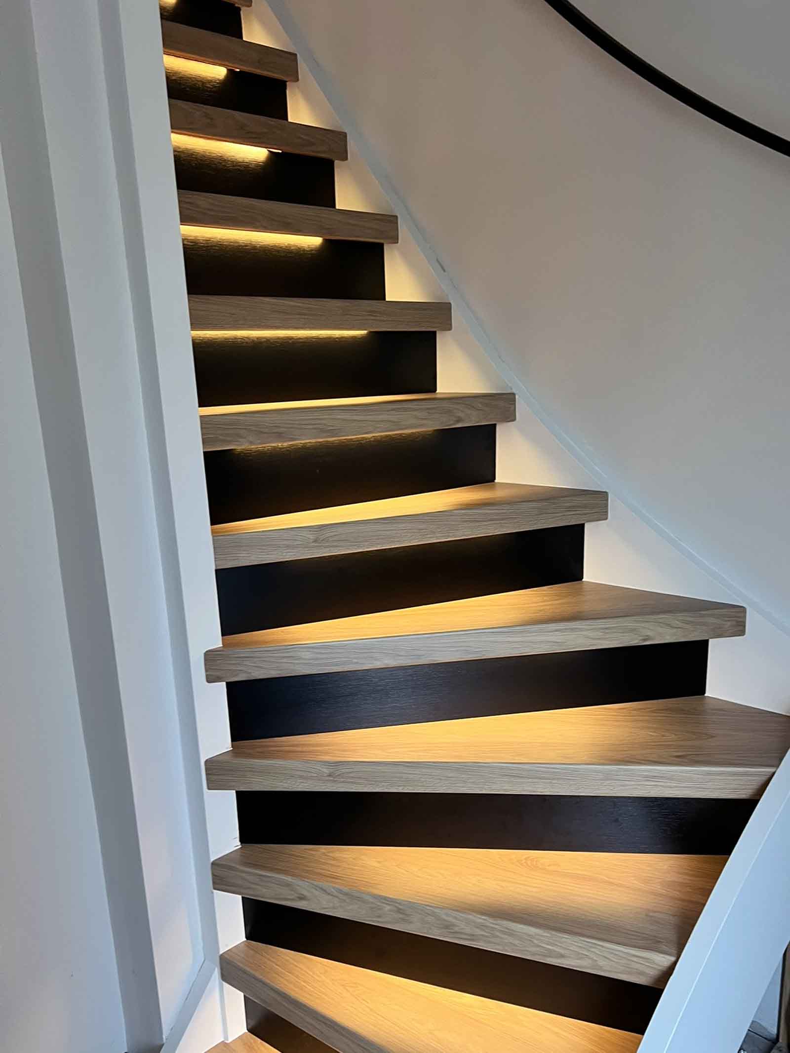 Of u nu kiest voor subtiele inbouwverlichting of opvallende LED-strips, wij hebben de juiste oplossing voor u. Ontdek hoe onze trapverlichting uw trap kan transformeren en een veilige, aantrekkelijke sfeer kan creëren.