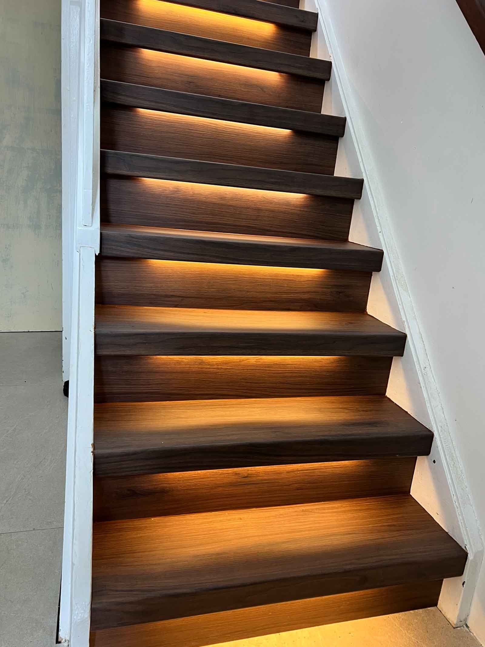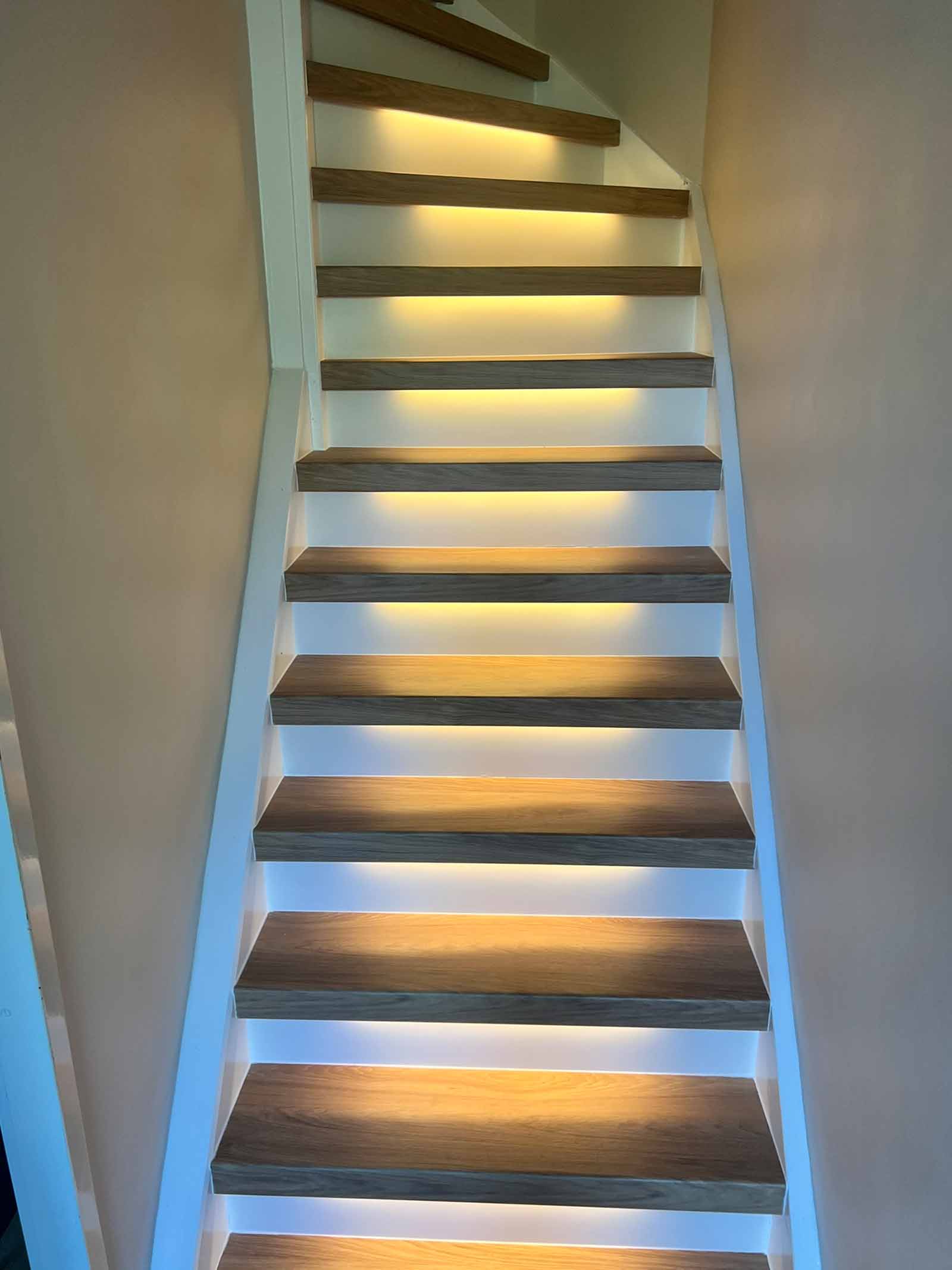 Goede verlichting is essentieel voor zowel de veiligheid als de uitstraling van uw trap. Bij Huisdecor bieden wij moderne LED-oplossingen die zowel de esthetiek als de functionaliteit van uw trap verbeteren. Onze verlichtingsopties accentueren uw trap op een stijlvolle manier en zorgen voor een veilige doorgang.